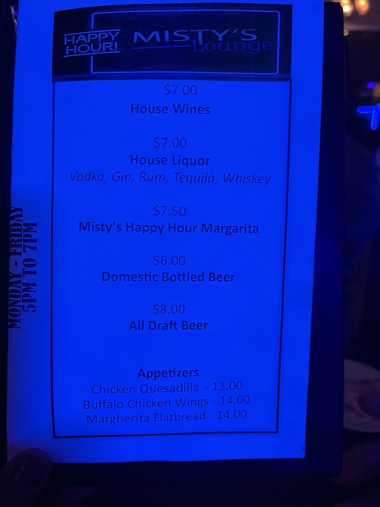 Misty's, a vibrant lounge and music venue located in Ontario, CA, offers a lively atmosphere with live music, happy hour specials, and a full bar. The menu features delicious dishes like Mushroom Ravioli served in a creamy garlic mushroom gravy with spinach and sundried tomatoes, perfectly paired with a refreshing Mai Tai. Customer reviews highlight the energetic dance floor, attentive service, and diverse music selection. While some note a strict dress code, the overall experience is described as fun and enjoyable. Misty's is the perfect spot for groups looking to dance, relax, and enjoy quality food in a lively setting. Don't miss out on the exciting Friday and Saturday nights at Misty's for a memorable dining and entertainment experience. So grab your friends and head over to Misty's for a night of great food, music, and fun!